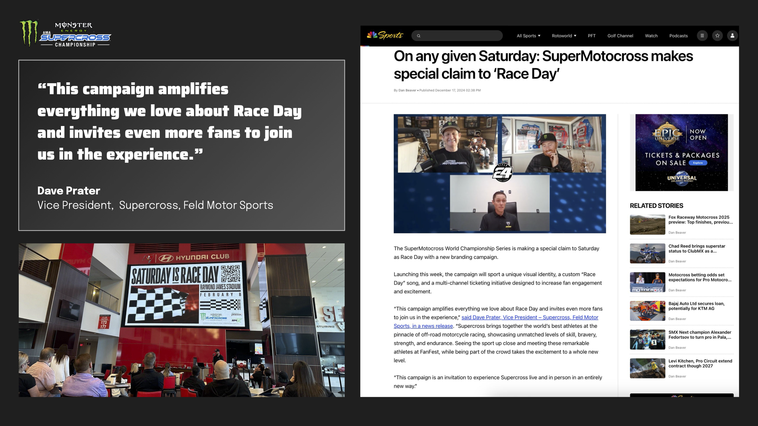 My team partnered with Supercross to plant our flag in the ground for Saturdays. In fact, we decided to go one step further, declaring that Saturdays aren’t even a thing anymore. Instead, Saturdays will henceforth be known only as RACE DAY. Sunday, Monday, Tuesday, Wednesday, Thursday, Friday, Race Day.